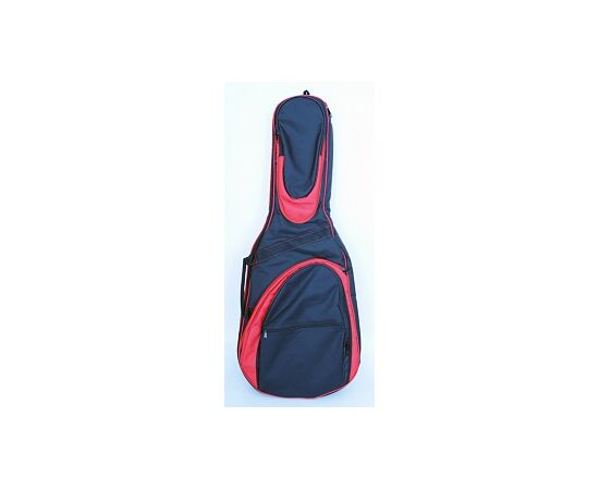 ЛЧГЭ5 Чехол для электрогитары рюкзачного типа цветной, двойной карман внизу, карман вверху, 2 вшитые лямки с накладками, двойная ручка, цвет красный/черный,