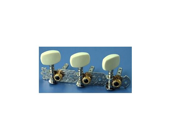 LOD-017A Комплект универсальной хромированной механики 40мм для гитары без пластиковой втулки с двумя отверстиями, с пластиковой ручкой. Расстояние между колками 40мм, шестеренка крепится винтом! Без упаковки! Alice