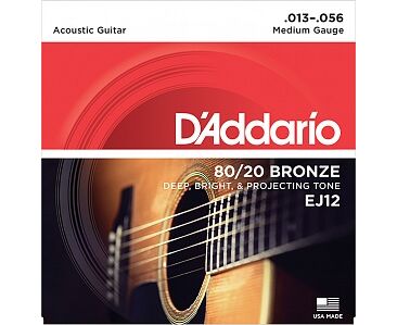 EJ12 BRONZE 80/20 Струны для акустической гитары бронза Medium 13-56 D`Addario