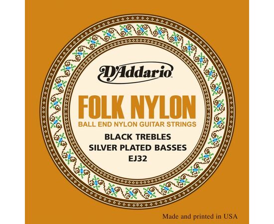 D'Addario EJ32 Folk Nylon Комплект струн для акустической гитары, шарик на конце, нейлон/посеребрен