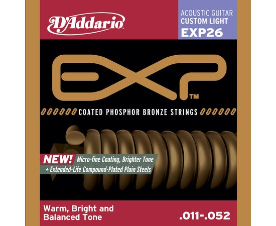 D'Addario EXP26 - струны для ак. гит. фосф./бр. в обол., Custom Light 11-52, 6-гранный корд