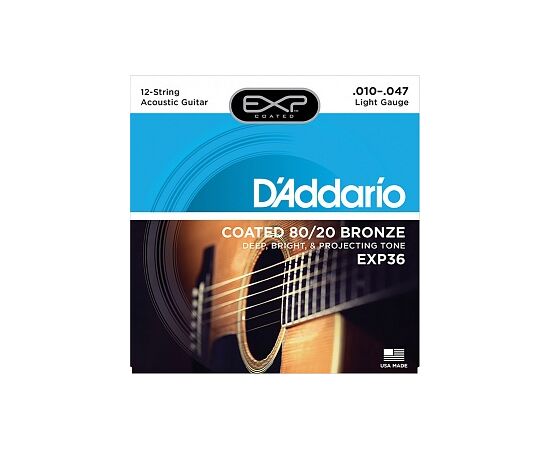 EXP36 COATED 80/20 Струны для 12-струнной акустической гитары 12-String Extra Light10-47 D`Addario EXP36