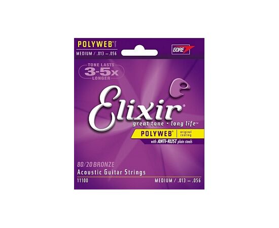 Elixir 11100 POLYWEB Комплект струн для акустической гитары, Medium, бронза 80/20, 13-56