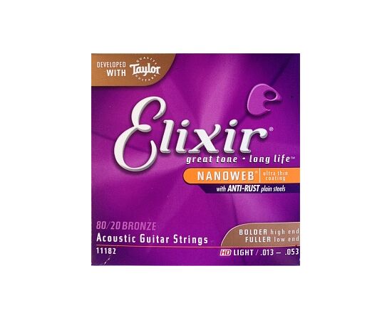 Elixir 11182 NANOWEB Комплект струн для акустической гитары, HD Light, бронза 80/20, 13-53