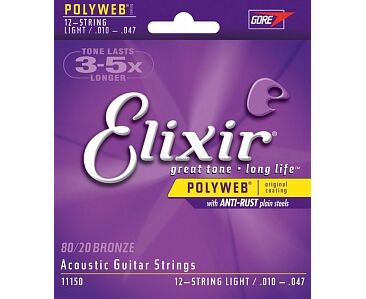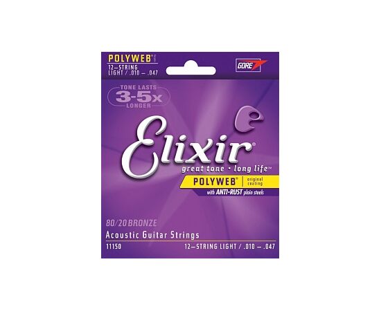 Elixir 16152 NANOWEB Комплект струн для 12-струнной акустической гитары, Light, фосф.бронза, 10-47,