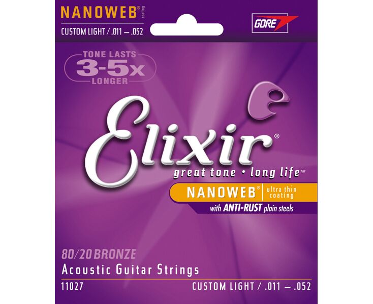 Elixir11027 NANOWEB Комплект струн для акустической гитары, Custom Light, бронза 80/20, 11-52
