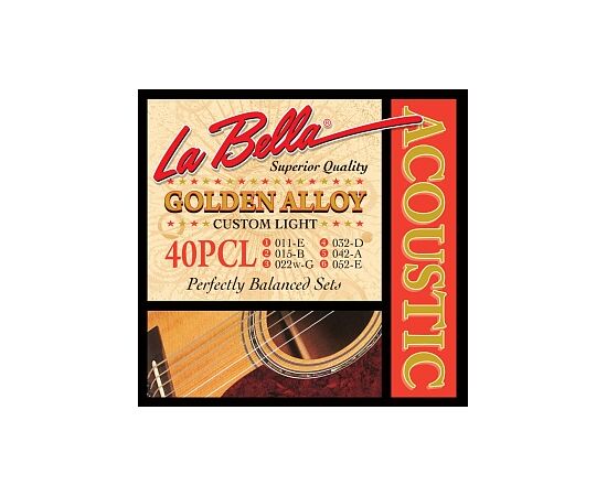 40PCL Custom Light Струны для акустической гитары. Оплетка басовых струн - специальный "золотой" сплав бронзы. 011 015 022W 032 042 052 La Bella