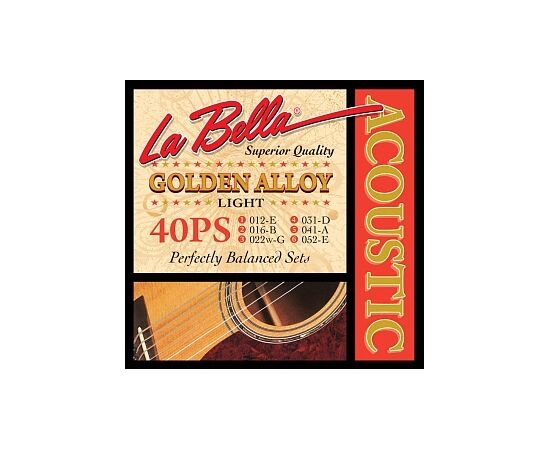 40PS Light Струны для акустической гитары. Оплетка басовых струн - специальный "золотой" сплав бронзы. 012 016 022W 031 041 052 La Bella