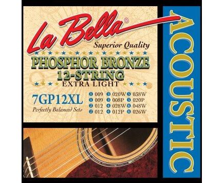 7GP12XL Extra Light Комплект струн для акустической 12-струнной гитары. Струны без оплетки - сталь, струны в оплетке - стальной керн в оплетке из фосфорной бронзы. 9/9-12/12-20w/8p-28/12p-38/20p-48/26w La Bella США