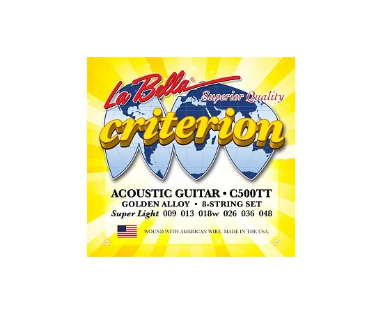 C500TT Criterion Ultra Light Комплект струн для акустической гитары. Верхние струны - сталь, басове струны - сталь в бронзовой оплетке. Компект содержит дополнительные 1 и 2 струны. 009-013-018w-026-038-048 La Bella