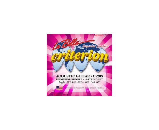 C520T Criterion Extra Light Комплект струн для акустической гитары. Верхние струны - сталь, басове струны - сталь оплетке из фосфорной бронзы. Компект содержит дополнительные 1 и 2 струны.012-016-022w-031-041-052 La Bella