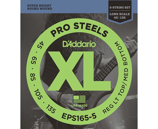 D'Addario EPS165-5 ProSteels Комплект струн для 5-струнной бас-гитары, Custom Light, 45-135