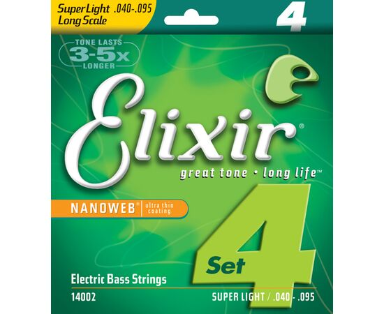 Elixir, 14002, NANOWEB Комплект струн для бас-гитары, никелированные, Super Light, 40-95,