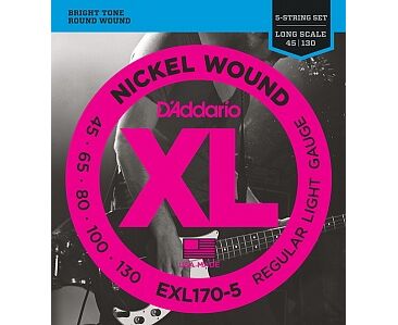 D'Addario EXL170-5 XL NICKEL WOUND Струны для 5-струнной бас-гитары 5-string Long Regular Lig 45-130