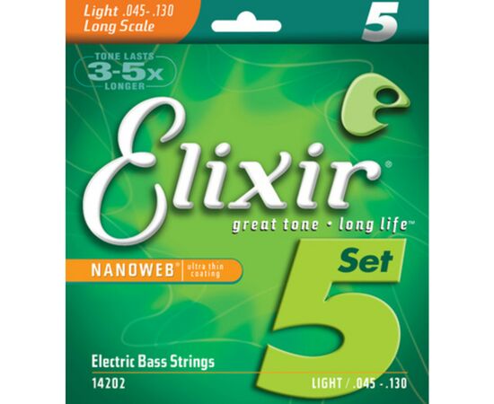 Elixir 14202 Electric Bass Stainless Steel Nanoweb Комплект струн для бас гитаhs (5 струн)
