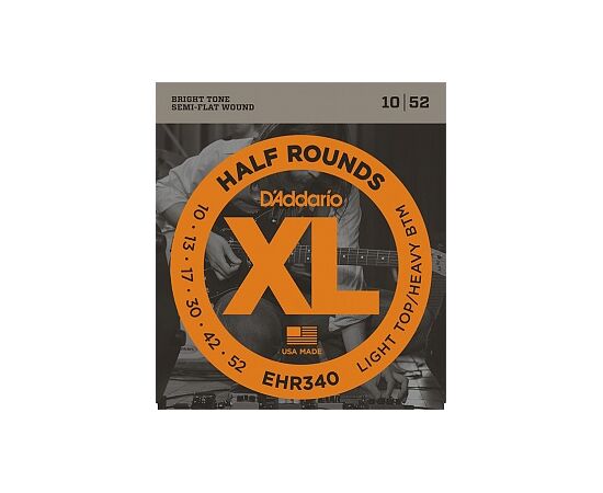 D'Addario EHR340 Half Round Комплект струн для электрогитары, Light Top/Heavy Bottom, 10-52