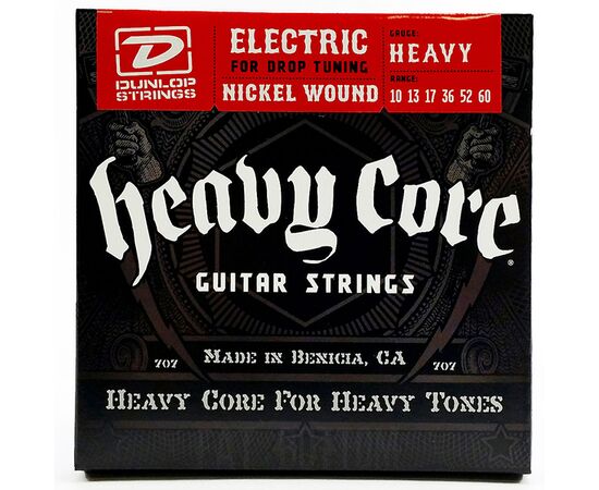 Струны Dunlop Heavy Core изготавливаются в Бенише, штат Калифорния и предназначены для игры в пониженном строе.