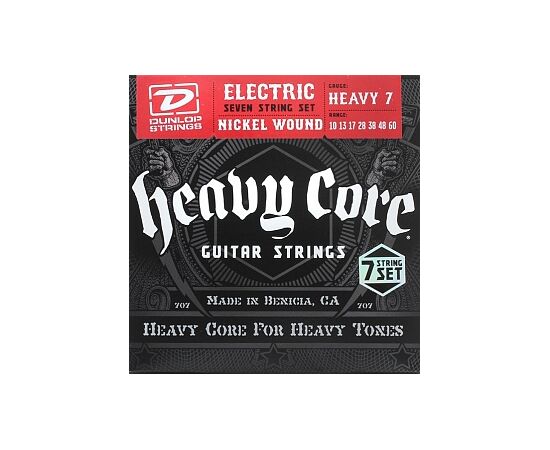Dunlop DHCN1060-7 Heavy Core Комплект струн для 7-струнной электрогитары, никелированные, 10-60,