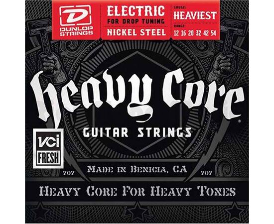 Струны Dunlop Heavy Core изготавливаются в Бенише, штат Калифорния и предназначены для игры в пониженном строе.