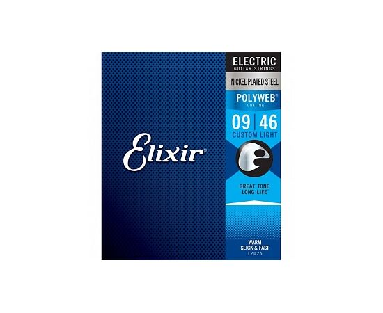 12025 POLYWEB Комплект струн для электрогитары, никелированная сталь, Custom Light 9-46, Elixir