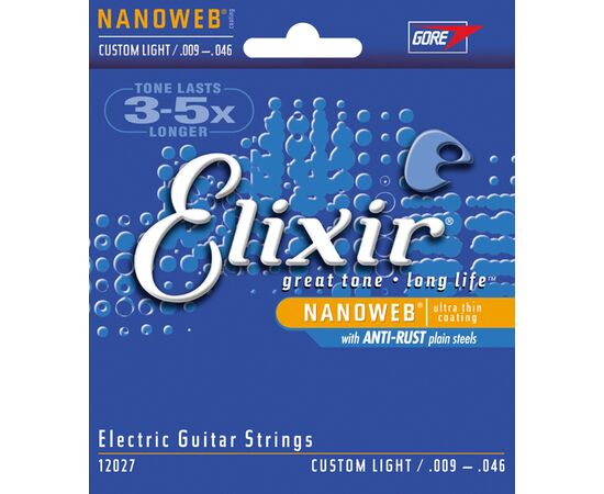 Elixir 12027 NANOWEB Комплект струн для электрогитары, Custom Light, 9-46