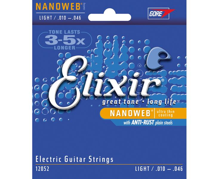 Elixir 12052 NANOWEB Комплект струн для электрогитары, Light, 10-46