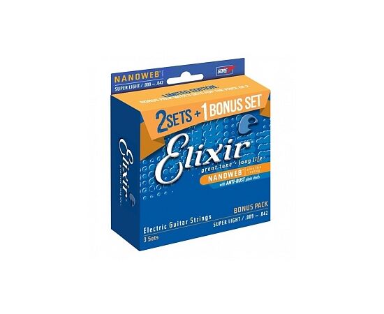 Elixir 16540 NANOWEB Cтруны для электрогитары, Super Light, 9-42, 3 комплекта