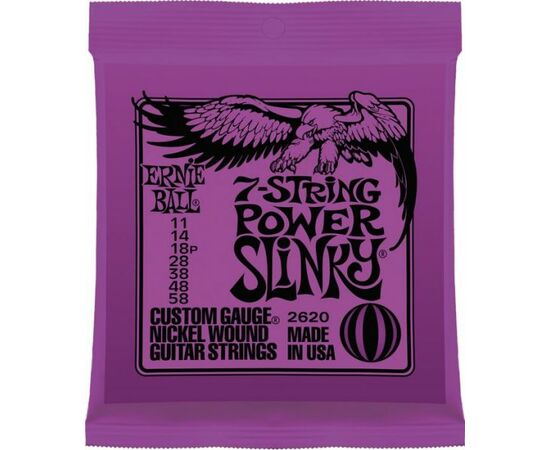 Ernie Ball 2620 струны для 7стр. эл.гитары Nickel Wound Power Slinky 7 (11-14-18p-28-38-48-58)