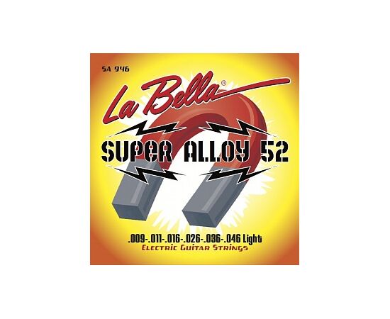 SA946 Super Alloy 52 Комплект струн для электро-гитары. Верхние струны - сталь, басовые струны - стальной керн в оплетке из сплава никеля 52% и железа 48%. 9-11-16-24w-36-46 La Bella США