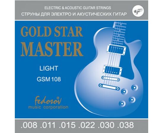 GSM108 Gold Star Master Light Комплект струн для электрогитары, нерж. сплав, 8-38, Fedosov