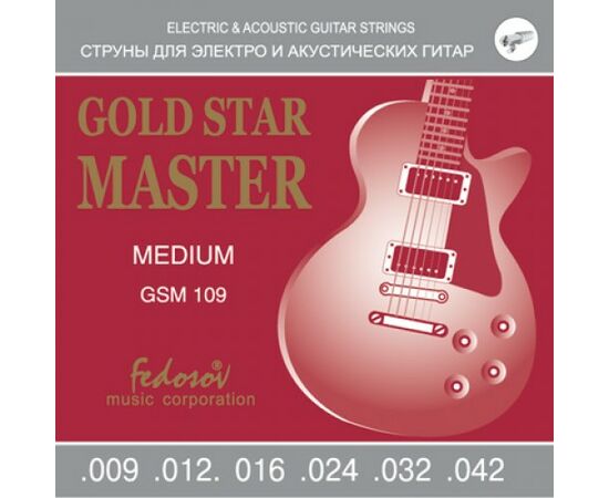 GSM109 Gold Star Master Medium Комплект струн для электрогитары, нерж. сплав, 9-42, Fedosov