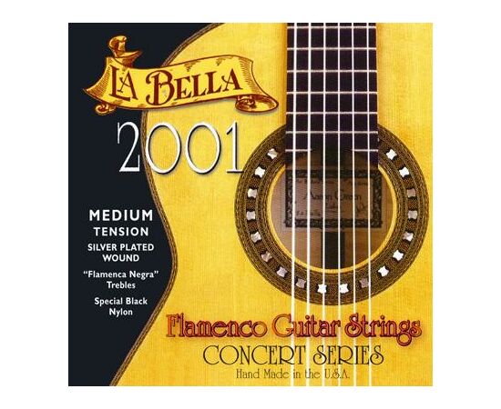 2001FM 2001 Flamenco Medium Tension Профессиональные нейлоновые струны для классической гитары. Первые струны - специальная нейлоновая мононить, басовые струны - посеребренная оплетка. Богатый звук и высокая износостойкость! La Bella