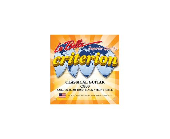 C800 Criterion Комплект струн для классической гитары. Верхние струны - черный нейлон, басовые струны - нейлоновая нить в бронзовой "золотой" оплётке. нормального натяжения La Bella США
