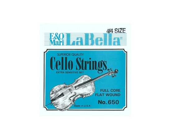 650 Комплект струн для виолончели. Струна ЛЯ - стальной керн, хромированная плоская оплетка, Струна РЕ - стальной керн, хромированная плоская оплетка, Струна СОЛЬ - стальной керн, хромированная плоская оплетка, Струна ДО - стальной керн, хромированная плоская оплетка. LaBella США