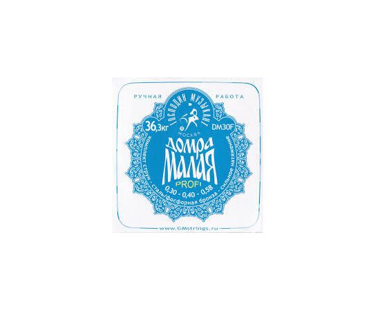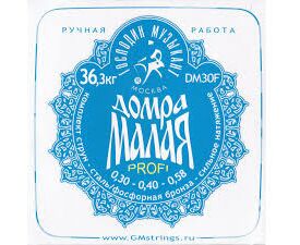 DM30F Комплект струн для Домры Малой (Сталь+ФБ) синяя профессионального сольного уровня из 3-х струн: 1) Ре - 0,30 мм (сталь ФРГ); 2) Ля - 0,40 мм (сталь ФРГ); 3) Ми - 0,55 мм, обмотка - фосфорная бронза. Общее натяжение струн = 32 кг (для мензуры 389 мм).