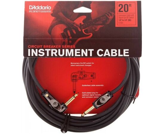 PLANET WAVES PW-AGLRA-20 кабель инструментальный, джек-угл. джек 6,10 метра, кнопка