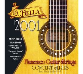 2001FM 2001 Flamenco Medium Tension Профессиональные нейлоновые струны для классической гитары. Первые струны - специальная нейлоновая мононить, басовые струны - посеребренная оплетка. Богатый звук и высокая износостойкость! La Bella