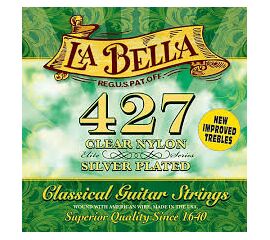 La Bella 427 Elite Комплект струн для классической гитары. Верхние струны - чистый нейлон, басовые - оплетка из посеребреной меди. Самый популярный комплект для классической гитары! Производится более 50 лет!