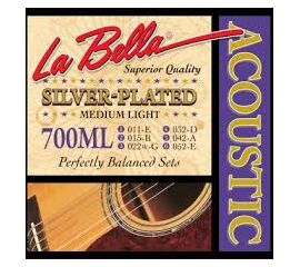 La Bella США 700ML Medium Light Комплект посеребренных струн для акустической гитары. 1 и 2 струны - сталь, 3,4,5,6 - стальной керн в оплетке из посеребренной меди. 011 017 022W 032 042 052