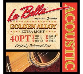 40PT Extra light Струны для акустической гитары. Оплетка басовых струн - специальный "золотой" сплав бронзы. 010 014 020W 028 038 050 La Bella