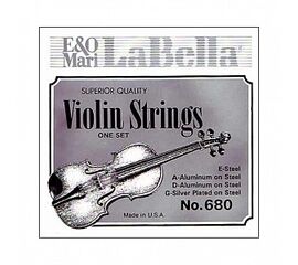 680 Комплект струн для скрипки. Cтруна МИ - сталь, шарик; струна ЛЯ - сталь/аллюминий, струна РЕ - сталь/аллюминий, струна СОЛЬ - сталь/серебро. LaBella США