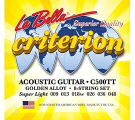 C500TT Criterion Ultra Light Комплект струн для акустической гитары. Верхние струны - сталь, басове струны - сталь в бронзовой оплетке. Компект содержит дополнительные 1 и 2 струны. 009-013-018w-026-038-048 La Bella