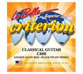 C800 Criterion Комплект струн для классической гитары. Верхние струны - черный нейлон, басовые струны - нейлоновая нить в бронзовой "золотой" оплётке. нормального натяжения La Bella США