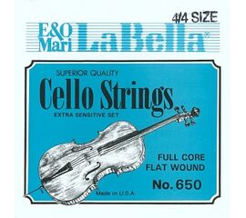 650 Комплект струн для виолончели. Струна ЛЯ - стальной керн, хромированная плоская оплетка, Струна РЕ - стальной керн, хромированная плоская оплетка, Струна СОЛЬ - стальной керн, хромированная плоская оплетка, Струна ДО - стальной керн, хромированная плоская оплетка. LaBella США