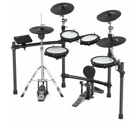 Электронная барабанная установка; конфигурация: 10" малый барабан x1, 10" том x1, 8" том x2, 12" тарелка x3, 14" тарелка x1, бас-барабан x1, педаль хай-хэт; 18 предустановок; USB-MIDI; эквалайзер; компрессор; овердрайв; реверберация