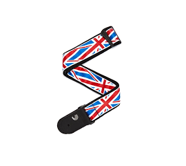 ремень гитарный World Stars and Stripes, ткань, Union Jack, кожанные наконечники + медиатор, цвет: сине-красно-белый