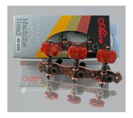 AOS-023V2P Комплект колковой механики для классической гитары, Alice Модель: хаузер. Материал: сплав цинка. Цвет: красная бронза. Ручки: прямоугольные. Длина: 113мм. Диаметр втулки: 9мм. Передаточное число: 1:16. Расстояние между посадочными отверстиями: 35мм. Длина втулки: 31мм....