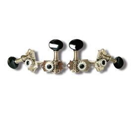 AU014BKP Комплект колковой механики для укулеле, Alice Высококачественные материалы. Плавная и надежная работа. Привлекательный внешний вид. Комплект одиночной колковой механики. 2 левых + 2 правых. Материал: сталь. Никелированные. Ручки: пластик АБС. Цвет ручек: черный.
