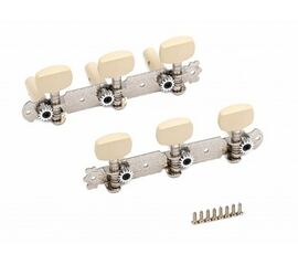LOD-017A Комплект универсальной хромированной механики 40мм для гитары без пластиковой втулки с двумя отверстиями, с пластиковой ручкой. Расстояние между колками 40мм, шестеренка крепится винтом! Без упаковки! Alice Материал: сталь. Покрытие: никель. Без пластиковой втулки, два отверстия под...