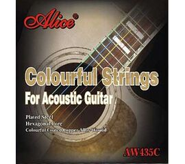 AW435C Комплект цветных струн для акустической гитары, сталь/медь, цветное покрытие, Диаметры (дюйм/мм): .011 .015 .024 .032 .042 .052 Упаковка - картонная коробочка. Alice Комплект струн для акустической гитары. Шестигранная стальная основа, оплетка из сплава меди. Струны оплетаются с...